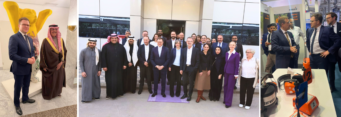| The visit of H.E. Carsten Schneider began with the inauguration of IFAT Saudi Arabia, a milestone event highlighting the growing importance of climate protection, resource efficiency, and sustainable industrial development amid the Kingdomâs ongoing economic transformation. This momentum was further reflected during a roundtable discussion hosted by GESALO at the German Embassy. German companies from the water, recycling, and related industrial sectors shared insights into the vast potential of the Saudi market during a oneâhour discussion moderated by our Delegate Dr. Dalia Samra-Rohte. |